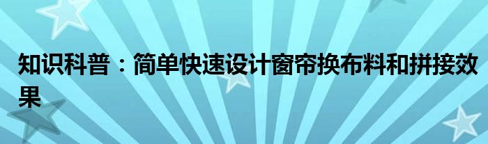 如今隨著人們生活品質越來越高,大家對于生活方面的追求也是越來越多了,那么既然對于生活方面的知識需求了解,那么小編今天就來給大家針對簡單快速設計窗簾換布料和拼接效果這方面的知識來進行一個介紹吧。