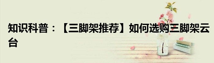 如今隨著人們生活品質越來越高,大家對于生活方面的追求也是越來越多了,那么既然對于生活方面的知識需求了解,那么小編今天就來給大家針對【三腳架推薦】如何選購三腳架云臺這方面的知識來進行一個介紹吧。