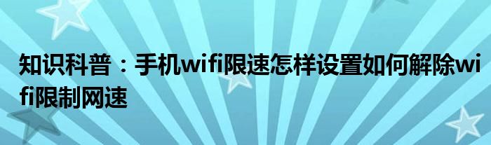 如今隨著人們生活品質越來越高,大家對于生活方面的追求也是越來越多了,那么既然對于生活方面的知識需求了解,那么小編今天就來給大家針對手機wifi限速怎樣設置如何解除wifi限制網速這方面的知識來進行一個介紹吧。