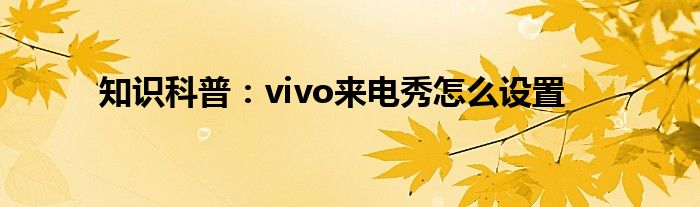 如今隨著人們生活品質越來越高,大家對于生活方面的追求也是越來越多了,那么既然對于生活方面的知識需求了解,那么小編今天就來給大家針對vivo來電秀怎么設置這方面的知識來進行一個介紹吧。