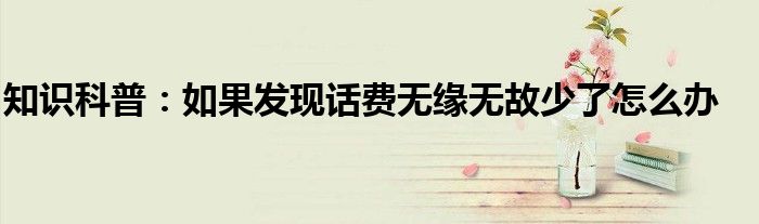 如今隨著人們生活品質越來越高,大家對于生活方面的追求也是越來越多了,那么既然對于生活方面的知識需求了解,那么小編今天就來給大家針對如果發現話費無緣無故少了怎么辦這方面的知識來進行一個介紹吧。