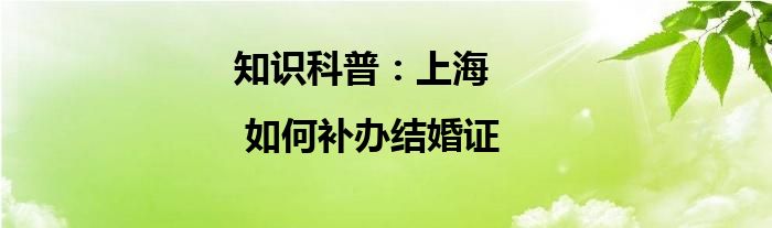 如今隨著人們生活品質越來越高,大家對于生活方面的追求也是越來越多了,那么既然對于生活方面的知識需求了解,那么小編今天就來給大家針對上海 | 如何補辦結婚證這方面的知識來進行一個介紹吧。