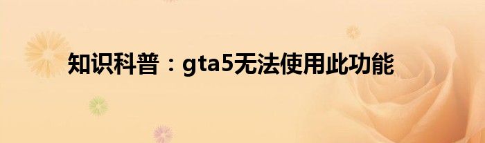 如今隨著人們生活品質越來越高,大家對于生活方面的追求也是越來越多了,那么既然對于生活方面的知識需求了解,那么小編今天就來給大家針對gta5無法使用此功能這方面的知識來進行一個介紹吧。