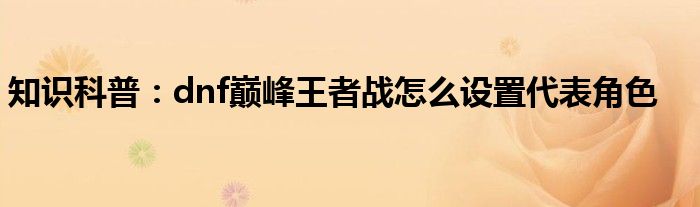 如今隨著人們生活品質越來越高,大家對于生活方面的追求也是越來越多了,那么既然對于生活方面的知識需求了解,那么小編今天就來給大家針對dnf巔峰王者戰怎么設置代表角色這方面的知識來進行一個介紹吧。