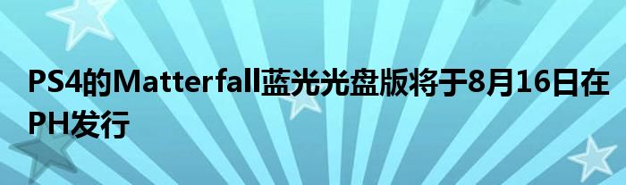 索尼(特別是SIES)將在菲律賓和東南亞地區(qū)的PS4 Blu-Ray光盤上發(fā)行Matterfall。