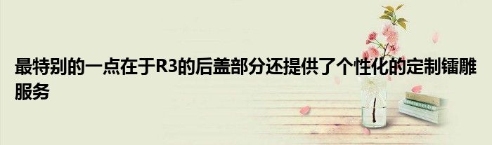 近期涉及最特別的一點在于R3的后蓋部分還提供了個性化的定制鐳雕服務(wù)內(nèi)容備受矚目,很多讀者對此也很有興趣,現(xiàn)在給大家羅列關(guān)于最特別的一點在于R3的后蓋部分還提供了個性化的定制鐳雕服務(wù)最新消息。