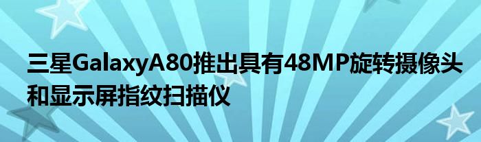 最近花姐發(fā)現(xiàn)有諸多的小伙伴們對于三星GalaxyA80推出具有48MP旋轉(zhuǎn)攝像頭和顯示屏指紋掃描儀這個問題都頗為感興趣的,大家也都想要及時了解到三星GalaxyA80推出具有48MP旋轉(zhuǎn)攝像頭和顯示屏指紋掃描儀相關(guān)信息,那么花姐今天就來為大家梳理下具體的關(guān)于這個問題的一些消息吧。
