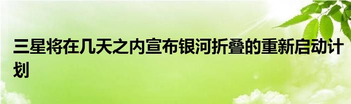 近期涉及三星將在幾天之內宣布銀河折疊的重新啟動計劃內容備受矚目,很多讀者對此也很有興趣,現在給大家羅列關于三星將在幾天之內宣布銀河折疊的重新啟動計劃最新消息。