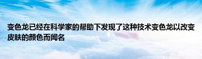 變色龍已經(jīng)在科學家的幫助下發(fā)現(xiàn)了這種技術(shù)。變色龍以改變皮膚的顏色而聞名,即使是它的名字,也有一種說法是像變色龍一樣改變顏色。但是現(xiàn)在這句話將在現(xiàn)實中被看到。