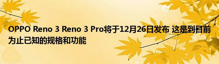 Oppo在ColorOS7發布會上宣布,該品牌將在12月推出Reno3系列智能手機。現在,Oppo的分部已更新其網站,宣布Reno3系列將于12月26日在杭州的一個活動上推出。