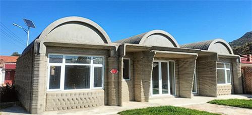 在娟子的家內部,這一棟農宅是我國第一棟完全由3D混凝土打印技術建造的房子,墻體呈現灰色,拱形的房頂。在農村的眾多房舍當中十分引人注目。