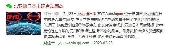 根據(jù)消息顯示,比亞迪和日本日野自動(dòng)車株式會(huì)社聯(lián)合開發(fā)的小型電動(dòng)車項(xiàng)目,目前已經(jīng)進(jìn)入擱淺狀態(tài)。此前雙方之間一直在進(jìn)行合作,由比亞迪日本負(fù)責(zé)制造汽車,但是汽車在制造好之后將被關(guān)于日野汽車的品牌在日本銷售。但是新車在設(shè)計(jì),制造好之后卻發(fā)現(xiàn)新車的電鍍螺栓和螺母等配件的制作過程當(dāng)中使用了六價(jià)鉻。