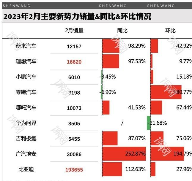 《深網(wǎng)》統(tǒng)計(jì)了9家車企,唯一一家環(huán)比下降的品牌,是華為全面主導(dǎo)的AITO問界品牌,2月份的銷售量只有3505輛,環(huán)比下滑了21.7%。特拉斯在今年的1月份宣布降價(jià)之后,問界是第1家緊跟著宣布降價(jià)的品牌,降價(jià)的幅度最高達(dá)到了3萬元,但是從目前的銷售量情況來看,降價(jià)所帶來的效果并不是很好。