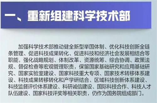 在提案中還表示未來會進(jìn)一步強(qiáng)化戰(zhàn)略規(guī)劃體制改革各部門綜合協(xié)調(diào)能力,資源統(tǒng)籌能力,通過改革保留國家現(xiàn)有的技術(shù)研究以及應(yīng)用研究,國務(wù)院現(xiàn)有的重要部門不變,會進(jìn)一步的劃分各部門之間的職責(zé),推進(jìn)以后的工作落實(shí)進(jìn)度。在最新的改革提案中,將科學(xué)技術(shù)部的組織擬定最新技術(shù)發(fā)展,包括最新技術(shù)企業(yè)規(guī)劃和政策、國家高新技術(shù)產(chǎn)業(yè)開發(fā)區(qū),等各科技園區(qū)建設(shè),指導(dǎo)國家自主創(chuàng)新示范區(qū)、技術(shù)市場科技中介組織發(fā)展等不同職責(zé)部門一并劃入了工業(yè)信息部。