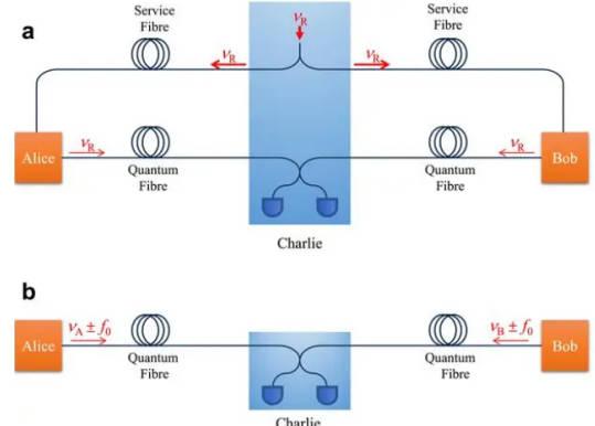 通俗一點講就是量子在傳送時候,想要兩端傳射的頻率相同,就需要在兩個量子信號塔之間去鋪設另外一條路,這也就組成了是由兩條路所組建成的開放式傳統架構,由光纖和量子相組合能夠讓量子兩端的發射頻率相同。
