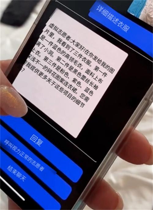 在換衣服的時候,如果對于手中的衣服顏色不明白不清楚,就可以直接拍攝照片。GPT-4會通過語音將衣服的顏色,材質,紋理形狀等清楚的描述出來。