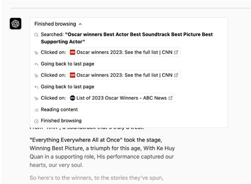 ChatGPT解除了不能聯網的封印,安裝插件之后就能聯網在更多的場景使用,OpenAI則表示,隨著插件的加入,ChatGPT不但能自己瀏覽網頁,還能主動和網站進行互動,人工智能好像真的成為了一個具有自主意識的人類,原先的插件則成為了它的工具。