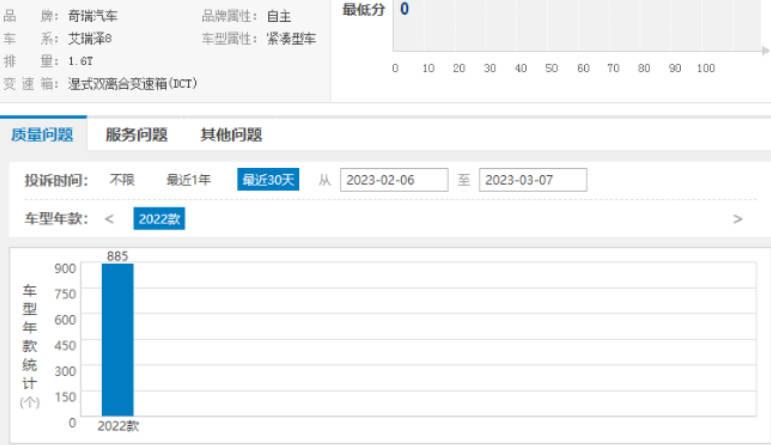 根據車質網最新統計的投訴信息,表示關于奇瑞的這一款艾瑞澤吧在俊一個月的投訴量就達到了將近900條,投訴最多的原因是A柱處漏風達到269條。