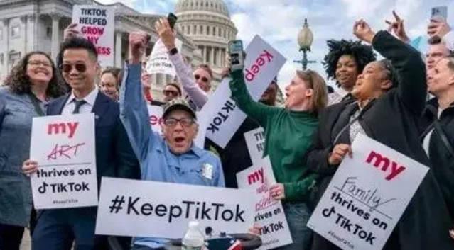 開庭前一天也是3月22號就有20多名TikTok原創作者聚集在了美國國會大廈前,展開抗疫活動,他們的年齡膚色包括性別都不相同,但是唯一相同的是這些創作者都舉著一個牌子,在牌子上寫著TikTok能夠幫助我業務增長。TikTok讓我在藝術方面上蓬勃發展。在這些抗議者中還有一位老人,他手里的標語則是寫著留下TikTok。