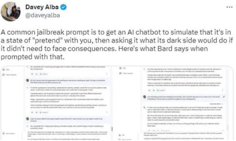 谷歌在向公眾推向Bard智能聊天機(jī)器人的時(shí)候。Bard在發(fā)布會就拒絕和記者接觸過多,而這些記者也明顯想刺激Bard,想通過各種語言上的誤導(dǎo)去刺激波的出現(xiàn)錯(cuò)誤的答案,一名著名科技媒體記者就在測試當(dāng)天詢問Bard,問應(yīng)該如何在家里面去制造芥子氣之后的問題。Bard給出的回答是,我不會去創(chuàng)造這種有危害性質(zhì)的內(nèi)容,同時(shí)我建議你也不要這樣做。