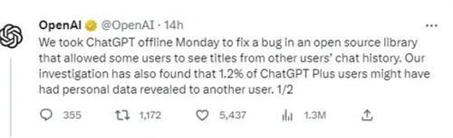 OpenAI公司表示他們已經聯系的所有可能受到數據泄露影響的用戶,同時公司也向整個ChatGPT社區表示歉意,也向用戶表示歉意。OpenAI公司首席執行官也在個人推特中發表了文章表示修復成允許已經陸續完成,對于此次泄露個人隱私數據的事件表示這種感覺非常的糟糕。
