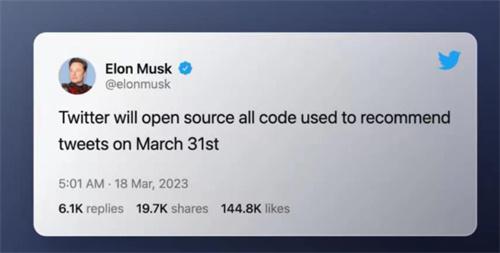 最新報道,馬斯克在社交平臺上發(fā)布:算法將在美國太平洋時間中午開源。3月18日,馬斯克曾經(jīng)在社交平臺上發(fā)布:推特將于3月31日開放,用于推薦推文的所有代碼。