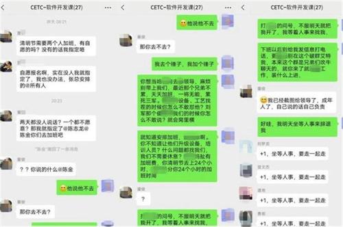 據知情人士介紹稱近日在網絡上獲得廣泛關注的員工,由于清明節加班怒懟老板的事件中的聊天記錄實際上是偽造。發布此信息的當事人實際上是四川德陽經開區一個科技公司的員工,并不是中國電科的員工,與中國電科沒有任何的關系。