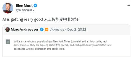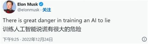 從馬斯克發(fā)現ChatGPT會出現失誤之后,馬斯克作為現任推特集團的boss,他就開始針對于人工智能危險論的話題制造輿論,站在輿論的高臺,從此之后馬斯克關于人工智能的看法就開始變得陰陽怪氣。在2023年的2月2號馬斯克在推特中回復一個用戶所提出的ChatGPT對于保守派存在政治偏見的問題時,馬斯克表示這是一個非常嚴重的問題。
