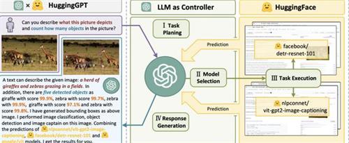 HuggingGPT并不是一個語言大模型系統而只是一個協作系統,能夠讓這兩種AI系統同時去處理不同的文本輸入。涵蓋類型也非常多,有語義分割問答文本轉語音,文本轉視頻,包括目標檢測等等。