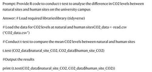 Nature表示在自己以往的教學(xué)中會為學(xué)生布置文獻綜述,在今年為避免抄襲并鼓勵學(xué)生創(chuàng)新,要求學(xué)生以小組形式在校園之內(nèi)收集空氣質(zhì)量數(shù)據(jù),但學(xué)生依然使用統(tǒng)計方式分析數(shù)據(jù),撰寫個人論文,很多學(xué)生對創(chuàng)建項目不熟悉,有些人想出了合適的辦法來評估二氧化碳的排放,于是我就建議他們使用ChatGPT幫助設(shè)計項目,而這個模型包括為幾點確認地點,將二氧化碳監(jiān)測設(shè)備選擇出來,將設(shè)備放好,開始收集數(shù)據(jù)并分析數(shù)據(jù),最終展示傳播結(jié)果。