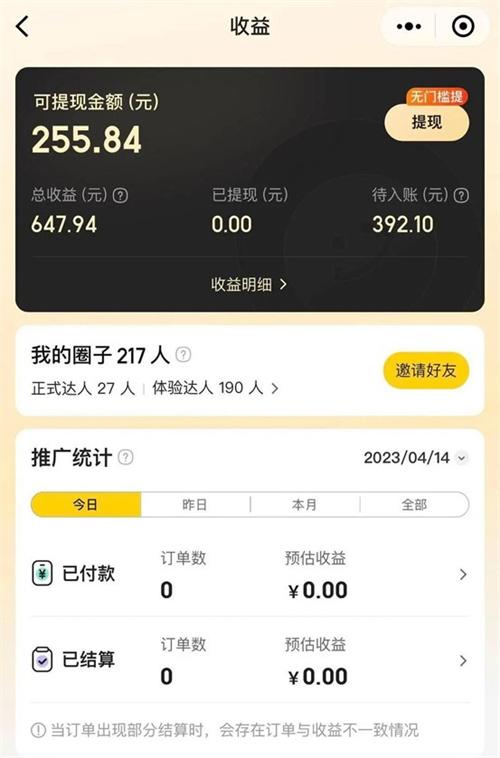 小張也向記者表示,通過公眾號引流創建社群的方式,總共吸引190個人注冊體驗,其中有27位成為正式達人,收到的傭金共計為647.94元。官方放出來的數據有達人在短短10天傭金便超過7萬元。