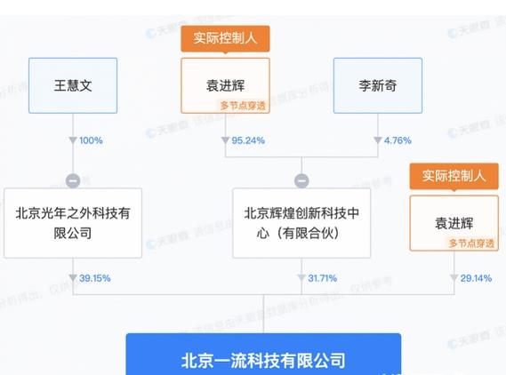 根據一流科技的股權結構,除了王慧文的光年之外,第二大股東為北京輝煌創新科技中心,持股比例為31.71%,第三大股東為袁進輝,持股29.14%。袁進輝是一流科技的創始人兼CEO,曾是微軟亞洲研究院研究員和360搜索的早期成員。由于北京輝煌創新科技中心的執行事務合伙人也是袁進輝,因此,一流科技目前的實際控制人仍然是袁進輝。此前有消息稱,王慧文的光年之外與一流科技已經達成了并購意向,交易以換股形式進行。