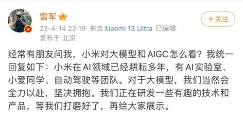 在2023年2月9日所舉辦的投資者會中,小米官方表示現在公司已經開始嘗試進軍到ai大模型領域,在接下來的時間內,公司將會加大人才和資源方面的輸出,在小米創始人雷軍發文之前,小米集團內部就已經確定了該項目的主要負責人,據了解,通過內部郵件,小米高層已經任命欒劍擔任技術委員會AI實驗室大規模團隊的總負責人。