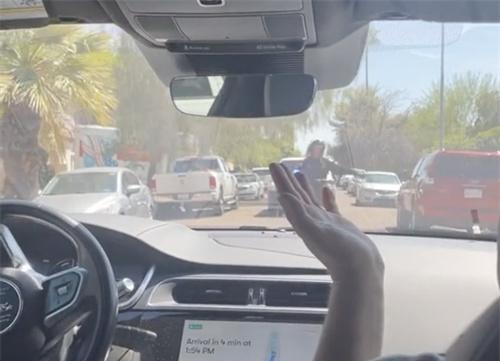 在亞利桑那州鳳凰城中,有一位交警從摩托車上下來將這臺Robotaxi攔截住了,交警利用手勢希望這輛車可以靠邊停下來,但車輛并沒有理解交警的意思和手勢,沒做出任何的反應。而交警面對這種情況也顯得有些不知所措,但車內的乘客也不斷大聲向警察解釋著這個現象表示沒有辦法對這輛車進行移動。