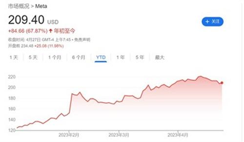當地時間的4月26日作為Facebook公司的Meta,將2023年第1季度的財報正式公布出來,2022年這一年極為慘淡之后,這第1季度的眾多數據也遠遠超過了市場的預期情況,26日盤后,漲幅一度超過了11.58%。