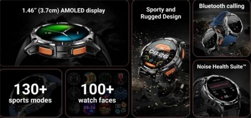 Noise Fit Force Plus搭載了一塊1.46英寸的AMOLED顯示屏,峰值亮度高達(dá)550尼特,給人留下了非常好的視覺印象。它使用堅固耐用的材料制成,可以輕松應(yīng)對各種戶外環(huán)境。此外,它內(nèi)置了超大容量電池,官方聲稱單次充電可持續(xù)使用7天。