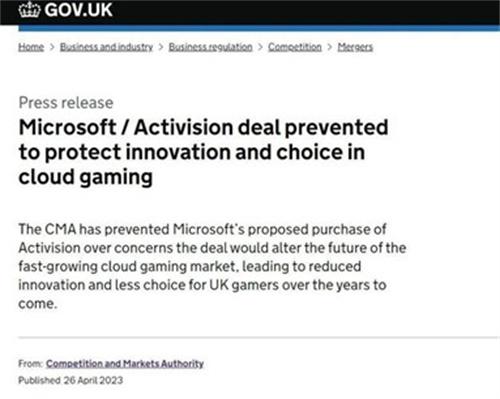 微軟本身以680億美元的價格準備收購作為游戲巨頭的暴雪娛樂,但是這一交易也遭到了英國競爭和市場管理局的阻攔,在一份報告中對其具體的理由作出闡述,主要是當前在游戲方面有著極高的開發(fā)成本,微軟的收購讓市場的壟斷性會進一步加劇,削弱游戲行業(yè)之間的競爭。
