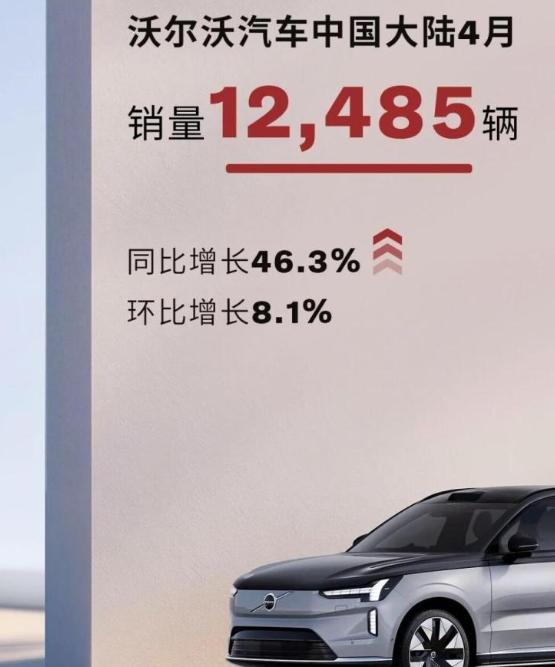 據(jù)沃爾沃官方消息,該公司公布了4月份的汽車銷量。數(shù)據(jù)顯示,沃爾沃汽車今年4月在中國(guó)大陸銷量達(dá)到12485臺(tái),同比增長(zhǎng)46.3%,環(huán)比增長(zhǎng)8.1%。其中,沃爾沃XC60銷量為4449輛,同比增長(zhǎng)43%;沃爾沃XC90銷量為1595輛,同比增長(zhǎng)28%;沃爾沃S90銷量為3096輛,同比增長(zhǎng)119%。