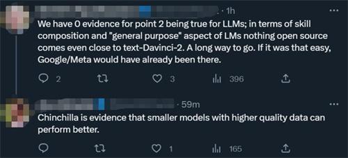 但也不是所有的研究者對于文章當中的觀點都表示贊同,對開源的模型是否能夠和open AI創建出來大模型的能力以及在各種類型通用性有一定的質疑,對于學術界來說,開源這一項力量能夠不斷的崛起這件事情還是很好的,即使沒有擁有1000塊的GPU研究者而已,依據開源的模型有事情可以進行。