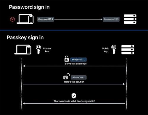 從身份認證這個角度出發、谷歌、微軟、蘋果推行的通行密鑰,將以往在服務器端存儲登錄的信息,替換成了在加密技術當中存在的口令,為某個賬戶創建這一密鑰的時候,就會生成一對公私密鑰,個人會掌握私鑰,沒有密碼的情況下,也不會存在重復或密碼強度問題。