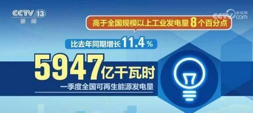 在第一季度,全國可再生能源發(fā)電量達(dá)到了5947億千瓦時(shí),同比增長了11.4%,超過了全國規(guī)模以上工業(yè)發(fā)電量的增速8個(gè)百分點(diǎn)。