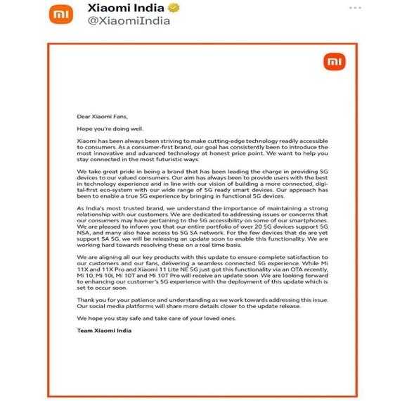 小米近日在其印度官方推特上宣布了一項(xiàng)重要消息,即將通過OTA升級為小米 11X、小米 11X Pro以及小米 11Lite NE 5G帶來SA 5G網(wǎng)絡(luò)兼容能力。這意味著印度的小米手機(jī)用戶將能夠暢連SA 5G網(wǎng)絡(luò),獲得更快速、更穩(wěn)定的網(wǎng)絡(luò)體驗(yàn)。