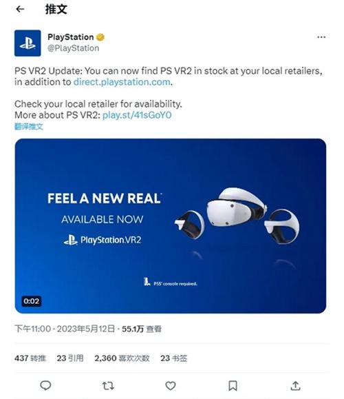 索尼在其PlayStation官方Twitter賬號上發布了一條推文,宣布消費者現在可以通過亞馬遜、沃爾瑪、Target、GameStop等主流第三方零售渠道購買PSVR2頭顯。