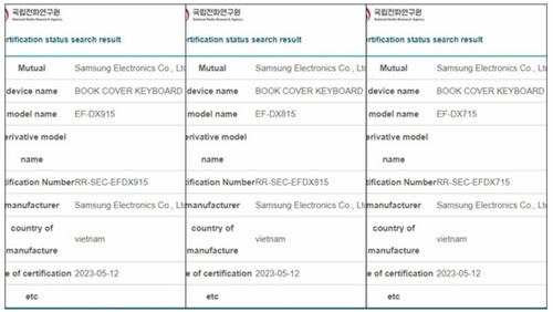 IT之家在5月13日報道稱,荷蘭科技媒體Galaxy Club透露,三星Galaxy Tab S9系列的官方Book Cover Keyboards鍵盤保護(hù)套已通過韓國監(jiān)管機(jī)構(gòu)認(rèn)證。