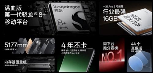 一加Ace2搭載了滿血版驍龍8+處理器,并配備了最高16GB的LPDDR5X內存和UFS3.1閃存,形成了強大的“性能鐵三角”。在安兔兔跑分測試中,一加Ace2的成績達到了114萬,同時能夠在后臺同時運行44款APP,大大減少了在重負載場景下的卡頓現象。尤其在游戲重負載場景下,一加Ace2能夠提供穩定流暢的內存體驗,讓用戶享受到頂級的游戲性能。