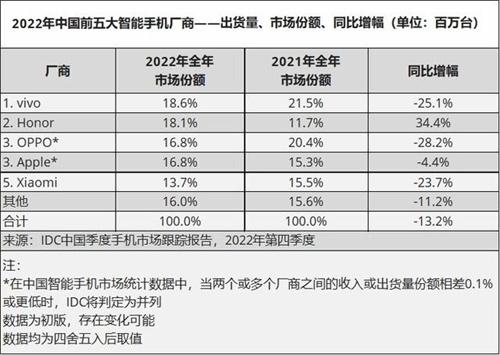 在數據統計方面,2022年中國智能手機的市場在出貨總量方面為2.86億,同比下降幅度高達13.2%,創造了有史以來最大幅度的降低,2023年在手機行業也并不會過于好轉,整個手機市場根據預計都會進入存量這一競爭階段,2023年手機的銷售數量預計還會繼續在下滑2.5%左右。