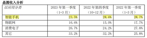手機行業(yè)此次業(yè)績較為低迷,主要就是智能手機芯片的代工廠運行方面比較低迷,中芯國際在智能手機上的收入進一步降價減少到23.5%,根據(jù)推算中芯國際的第一季度方面手機業(yè)務(wù)總營業(yè)額為23.99億元。