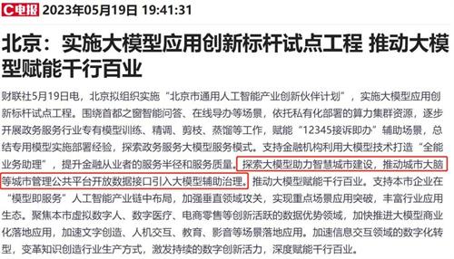 北京地區也提出了去探索大模型對智慧城市建設的方式,讓城市大腦等城市管理的平臺可以將數據接口開放,將大模型引入其中,輔助智慧型城市的建設。城市大腦稱之為城市智能中樞,將智慧城市互聯網大腦構架互相結合在一起所生成的,是城市級別和人腦類似的一套智能化的復雜系統,包括云計算、大數據、區塊鏈、人工智能等眾多新的技術,讓城市競爭力、治理能力都能夠提升。