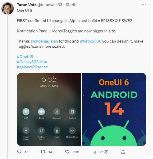 IT之家消息,近日有消息源 @TarunVats33 在最新的推文中分享了基于安卓14的OneUI 6.0 Alpha預覽版的更新,并提供了多張截圖和演示動圖。