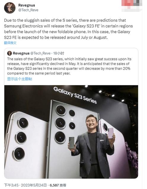 這一趨勢將導致三星加快推出Galaxy S23 FE新手機的發布。據傳言,這款手機將在Galaxy Z Fold5和Flip5之前發布并上市。根據爆料,預計三星將在7月甚至更早的時候發布Galaxy S23 FE。